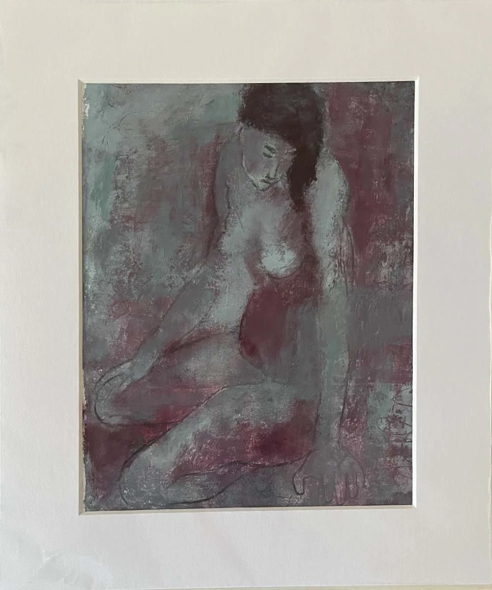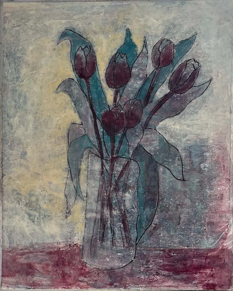 Monoprint #6with Acrylic and sanguine . Mounted with archival white mat to 10" x 1 2".