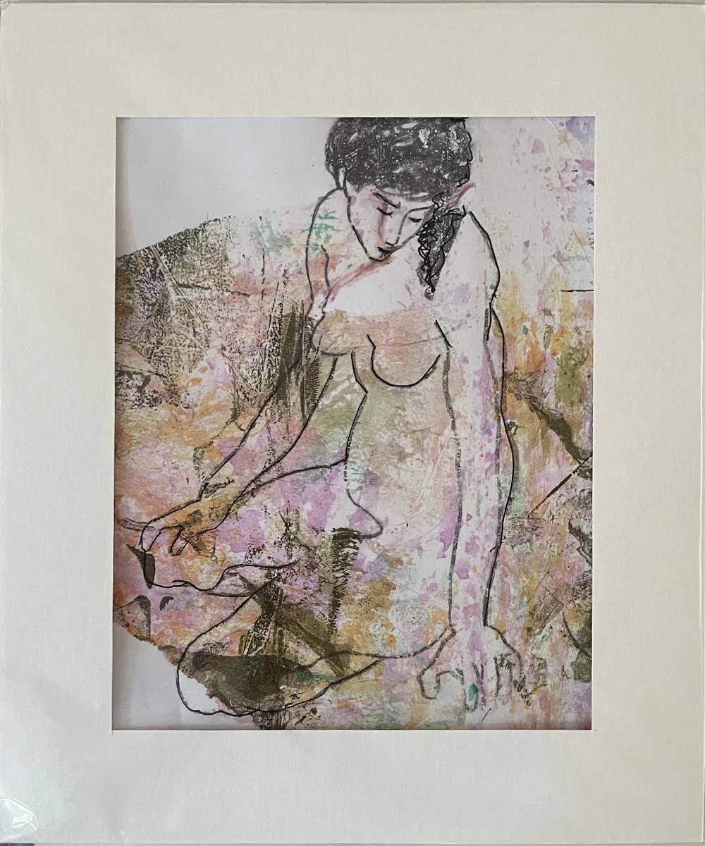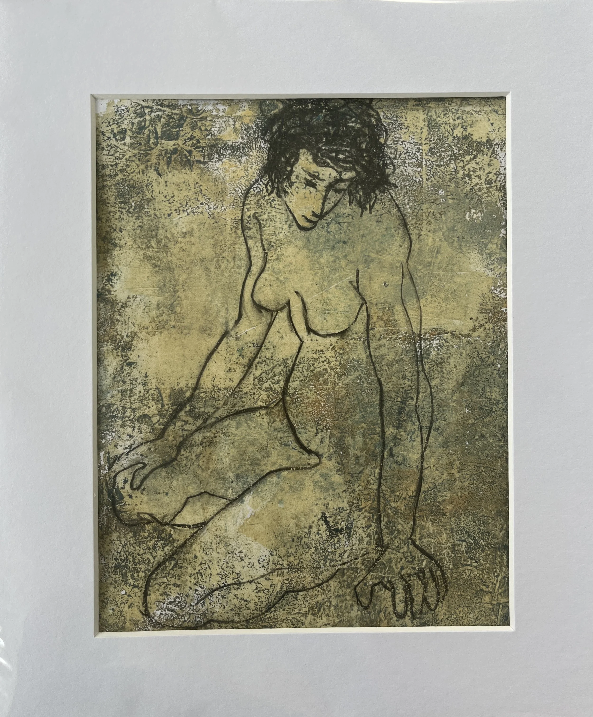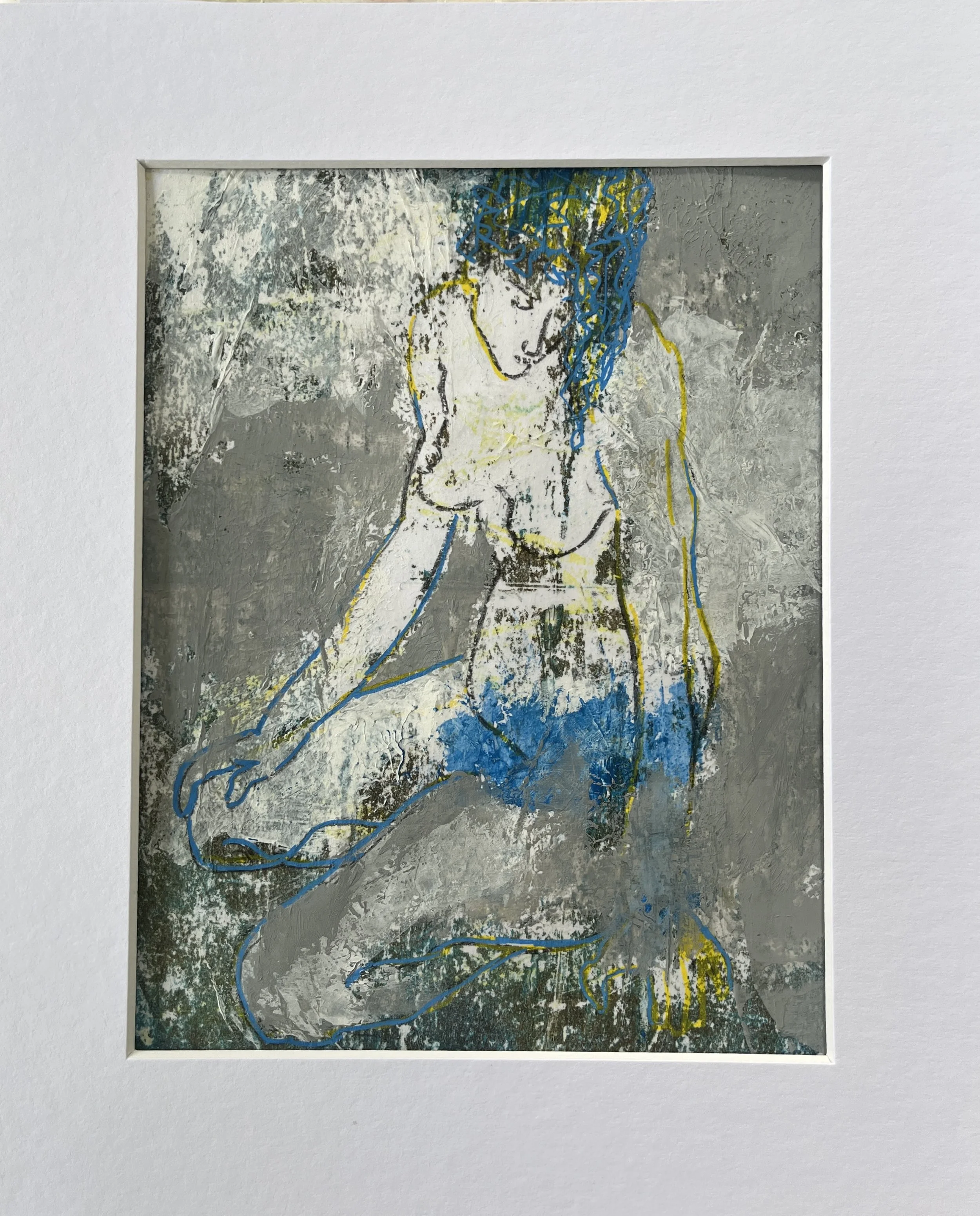 Monoprint #4 on paper with Acrylic. Mounted with archival white mat to 10" x 1 2".