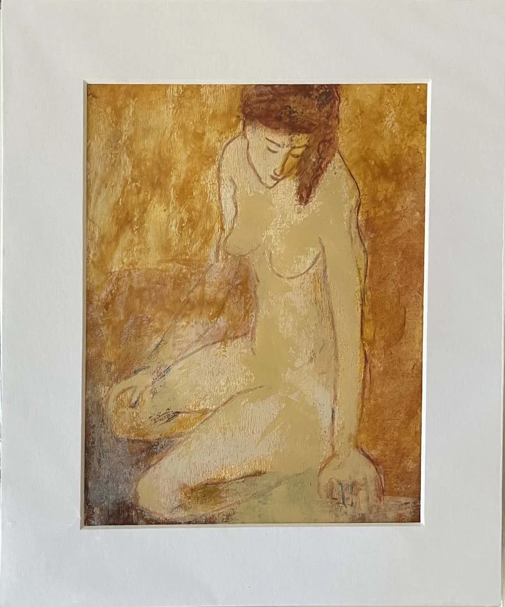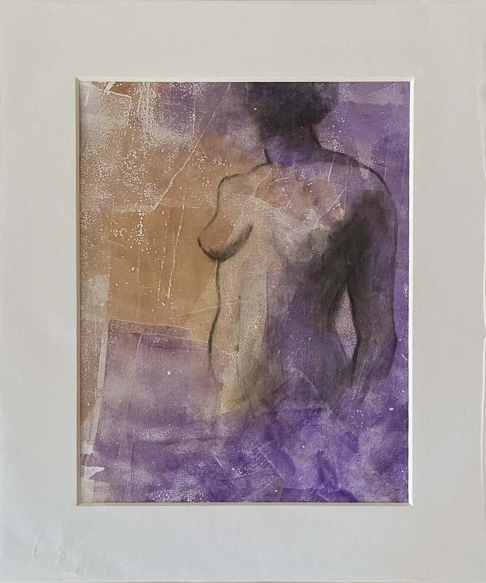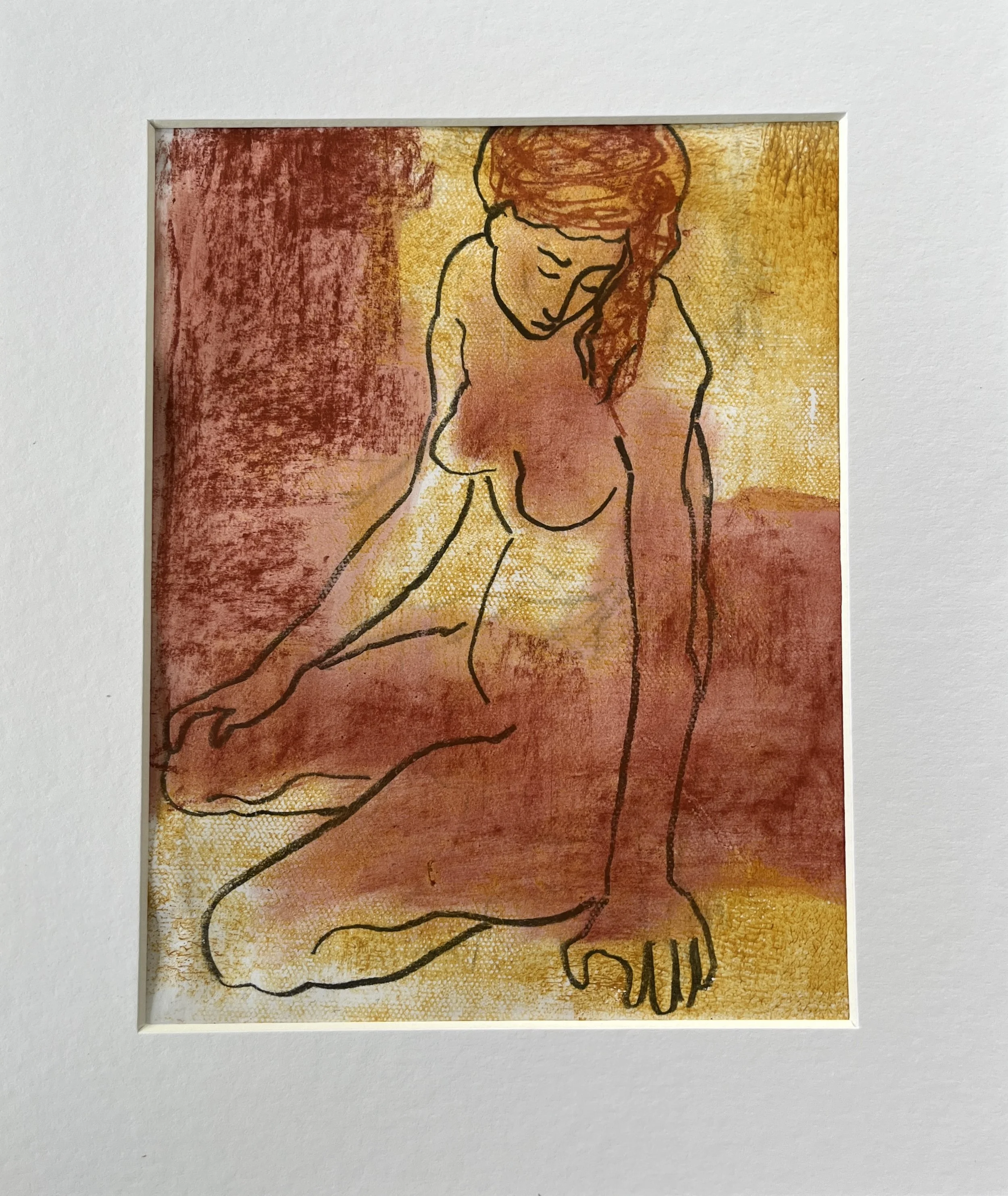 Monoprint #11 on paper with Acrylic and sanguine. Mounted with archival white mat to 10" x 1 2".
