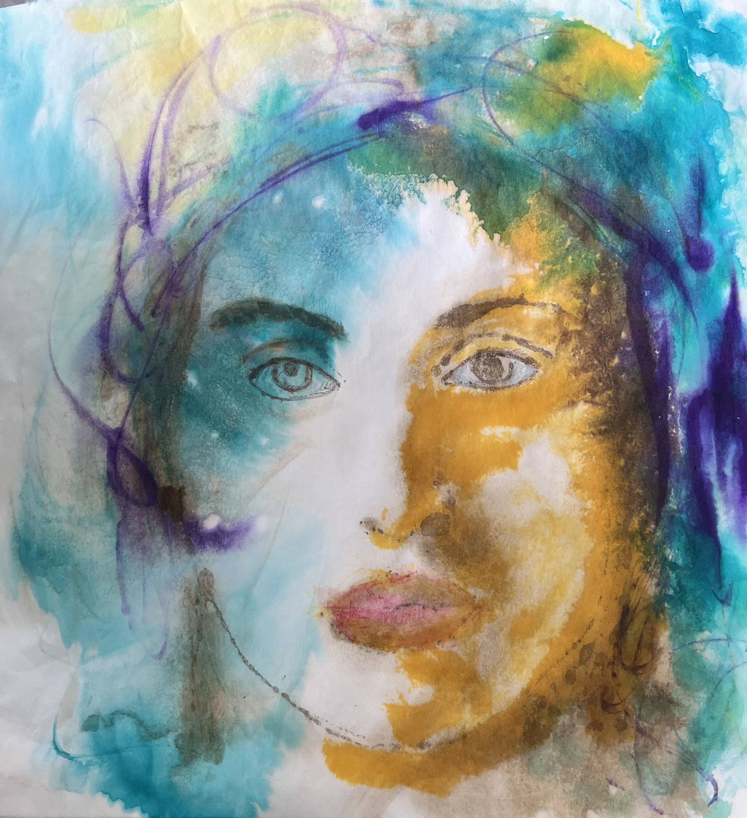 Untitled (portrait) - ink on rice paper - Framed 12x12inches