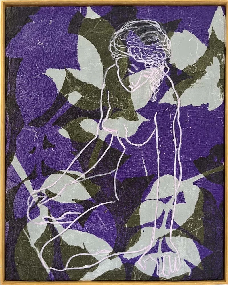 In the shape of Alone - collage and drawing on board - 8 x 10 inches Framed